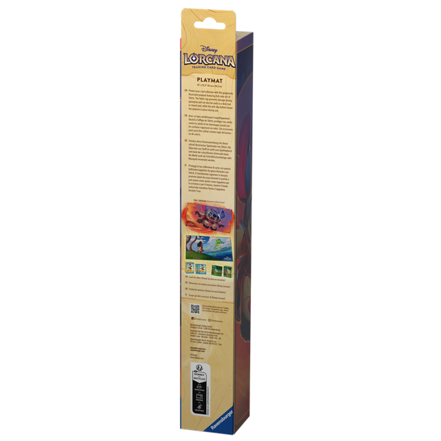 Deze officiële Disney Lorcana Into the Inklands speelmat met Stitch-artwork biedt een glad speeloppervlak dat je kaarten beschermt en soepel laat schuiven. De antislip onderkant houdt de mat stevig op zijn plaats. Gemaakt van duurzaam neopreen en ideaal voor zowel Lorcana als andere TCG’s. Afmeting: ca. 61 × 34 cm.